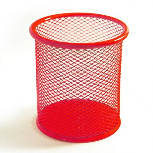 Подставка для ручек круглая метал. сетчат, красная