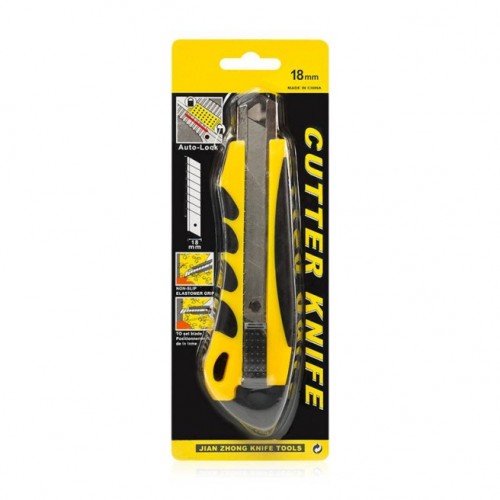 Нож 18 мм с пластиковым корпусом и автоматической фиксатор, жёлтый