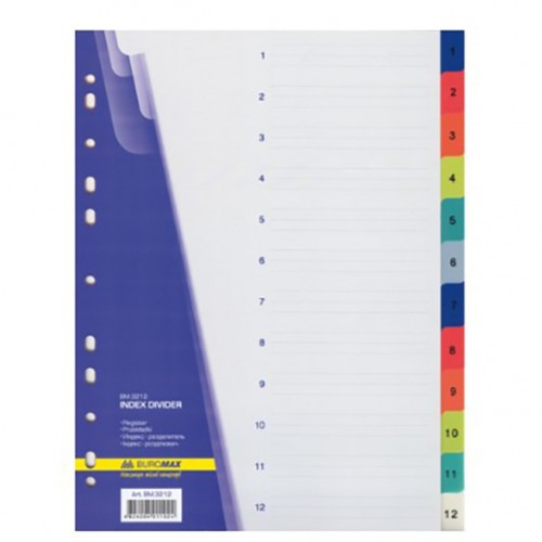 Цифровой пластиковый разделит Buromax цветной 1-12 (12 штук)