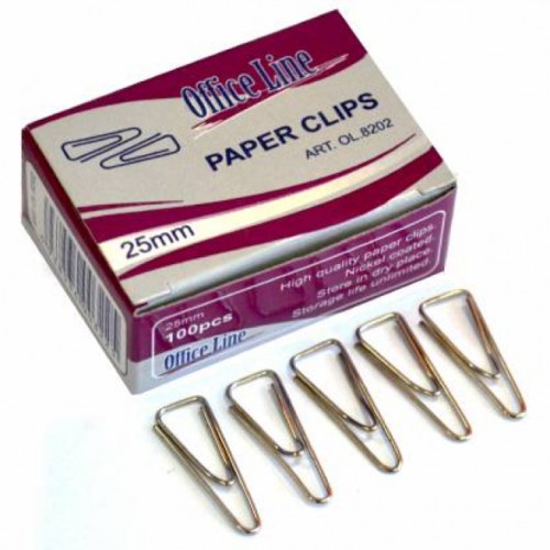 Скрепки металлические никелированные для скрепления документов. Не оставляют следов на бумаге. Гладкая поверхность. Трегольная форма.