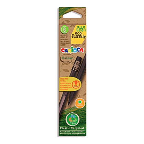 Карандаш графитовый черное дерево, шестигранный HB с ластиком, EcoFamily, Carioca