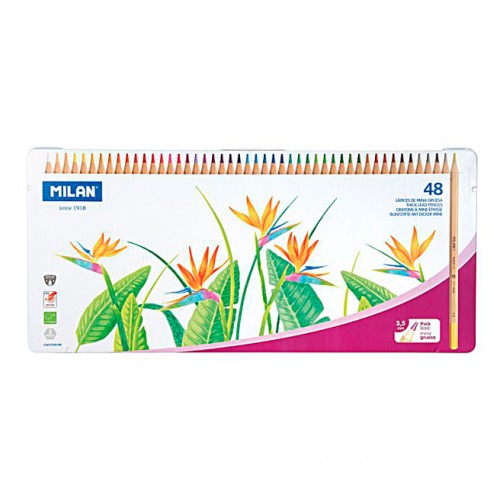 Набор цветных карандашей 48 цветов с толстым грифелем, Ø 3,5 мм в металлическом пенале, Milan